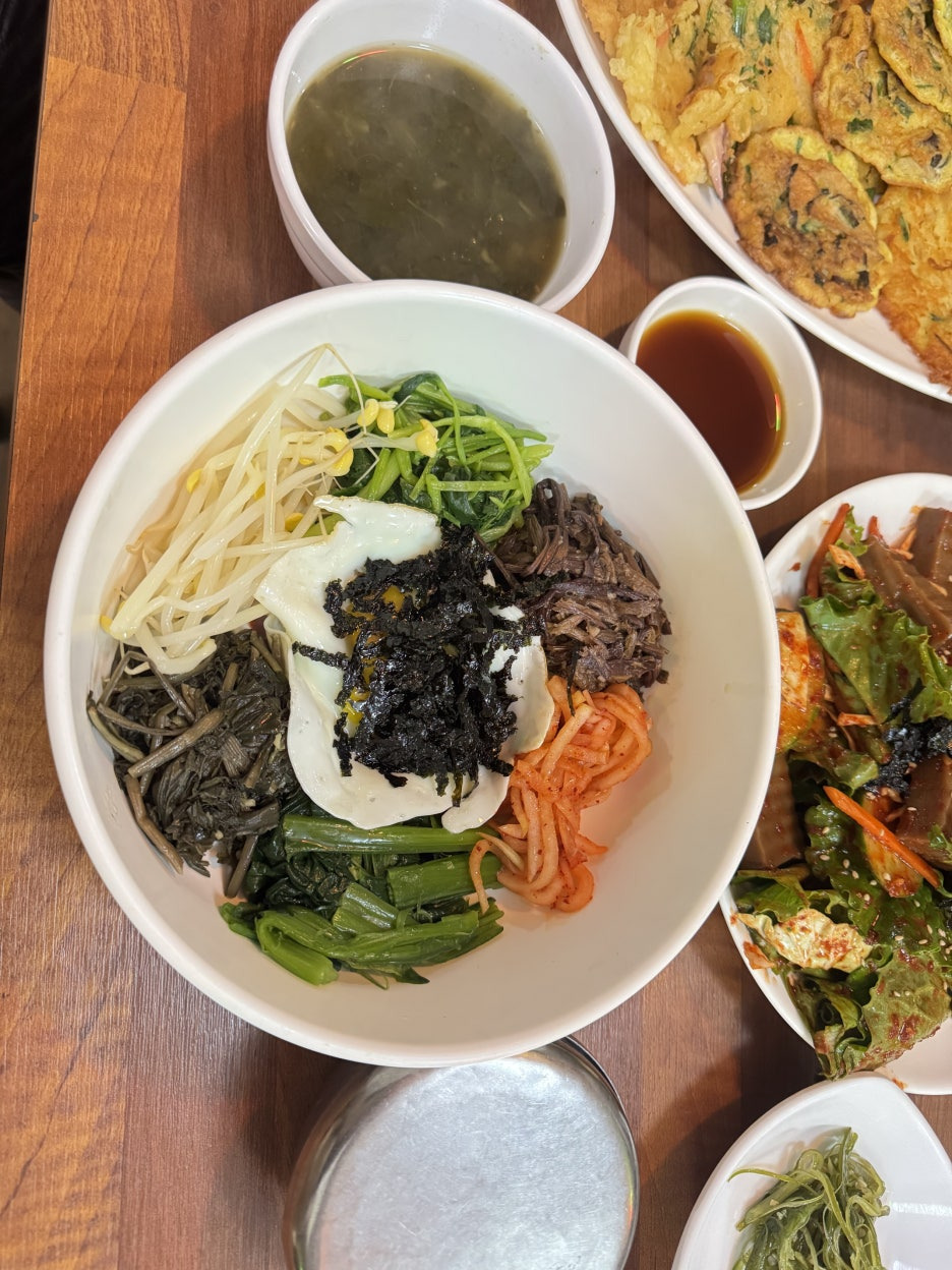 산채비빔밥은 야채가 푸짐하고, 밥 자체가 고슬고슬해서 깔끔하게 먹을 수 있는 한 끼.